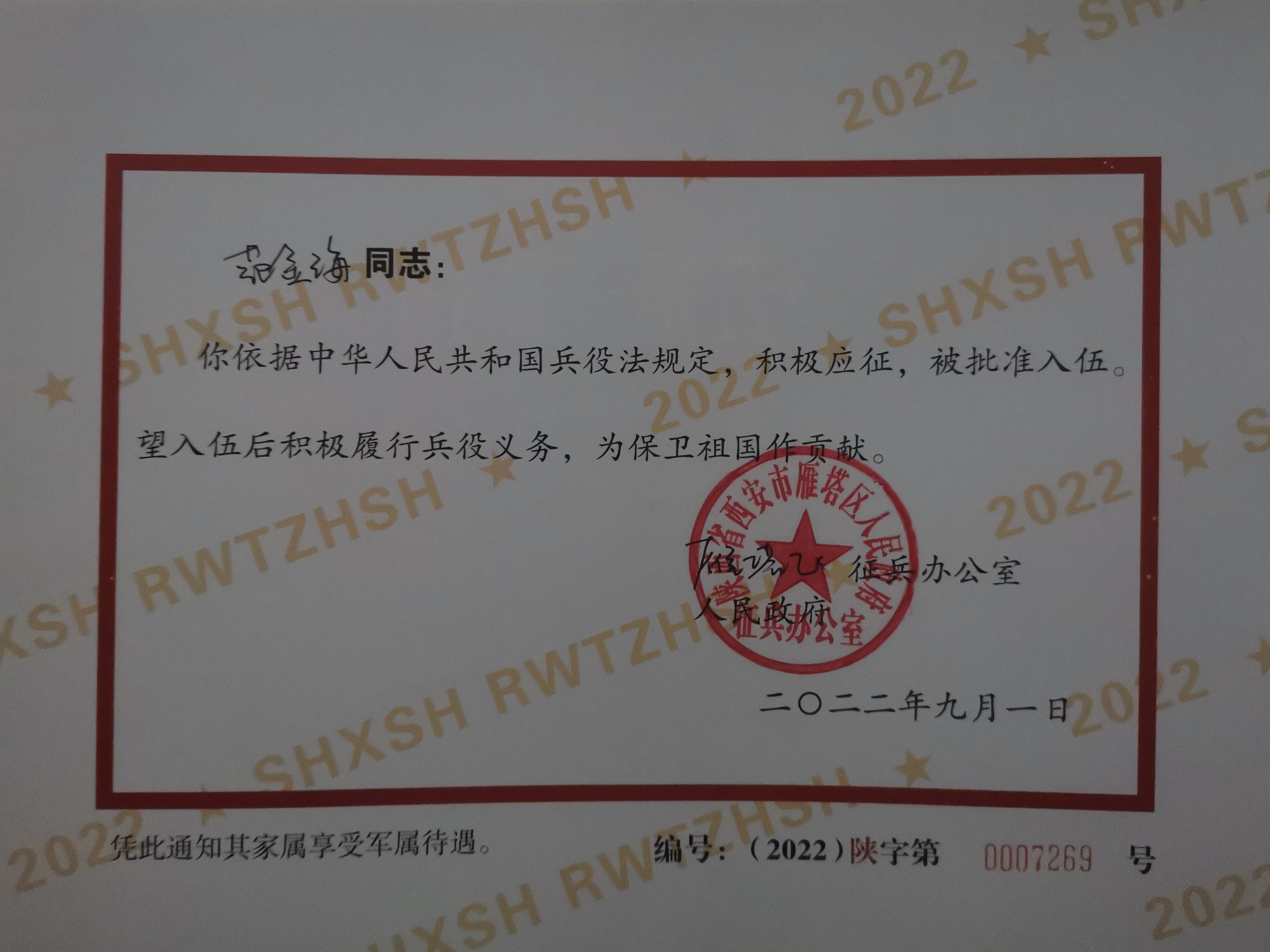 保家卫国终无悔,绿色军营献青春。近日,公司2020级本科生范金海成功应征入伍,这是公司今年第二名成功应征入伍的员工。
