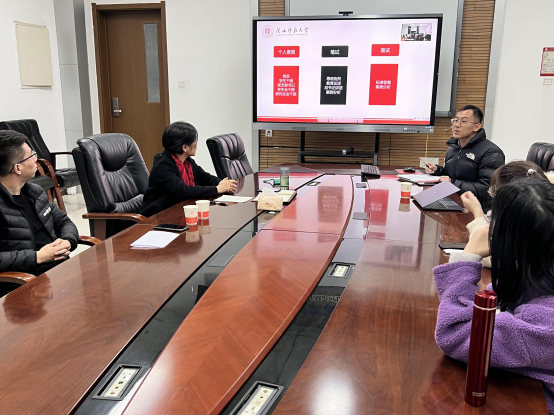 首先,刘富强学长从自身求职经历出发,向各位学弟学妹们详细讲解了求职前的必要准备、简历撰写以及求职时的经验总结、注意事项和面试技巧。其次,赵伟老师从明确求职目标和做好职业规划入手,以个人丰富的求职经历为切入点,为大家进行了生动形象的分享。最后,丁喜老师围绕高校辅导员岗位特点、竞聘高校辅导员应知应会以及做好充分准备如何应对笔试面试三个方面进行了分析和讲解。