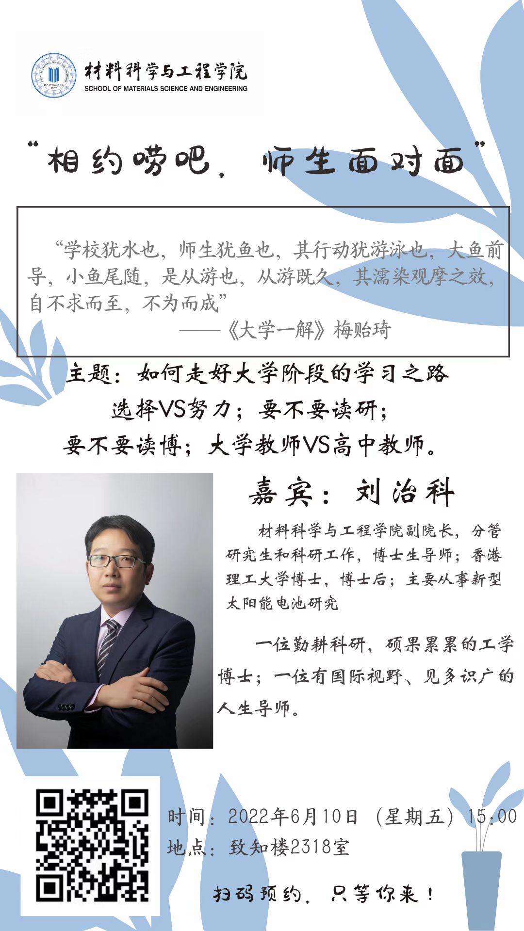 日下午开展第六期“相约唠吧,师生面对面”活动。具体通知如下: