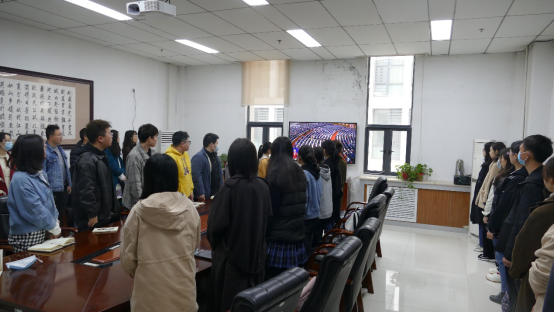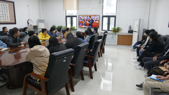 上午9时,英国365集团官网本科生党支部及研究生党支部在公司三层会议室进行集中观看学习。参与集中学习的党员同志准时到达会议室,共唱国歌,认真聆听工作报告,进行学习记录。