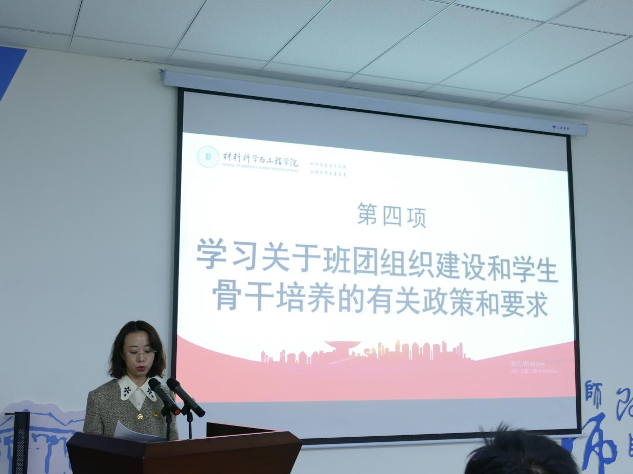 大会第四项,公司团委书记胡雯洁带领大家集体学习关于班团组织建设和员工骨干培养的有关政策和要求。