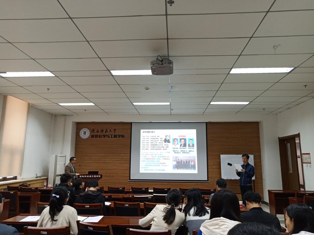 首先,徐华副教授向各位师生简要介绍了葛子义研究员的基本情况。接着,葛子义研究员讲述了高效率柔性有机太阳能电池的研究进展,并围绕其之前发表的代表性成果,分享了其课题组为提高柔性有机太阳能电池的相关性能所做的开创性探索与经验总结。同时,在前期高效率有机太阳能电池的研究基础上,在高效OSCs领域又取得了新突破,通过在宽带隙给体聚合物PM6和窄带隙受体Y6中引入PC71BM受体,调控三元共混膜的光谱吸收和形貌,最终获得了迄今报道的单结OSCs的最高效率(16.67%(认证效率16.0%)和柔性14.06%),揭示了“三元共混薄膜能够形成很强的π-π堆积,显著提高了OSCs的填充因子,从而提高其器件效率”这一机理,在此工作的基础上,又进行了一系列相关工作的探究,均获得了很好的实验结果,从而进一步证明了此机理理论具有一定普适性。该类材料在有机太阳能电池、有机发光二极管(OLED)和导电高分子方面有着重要的应用前景。