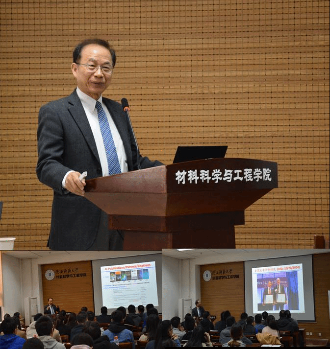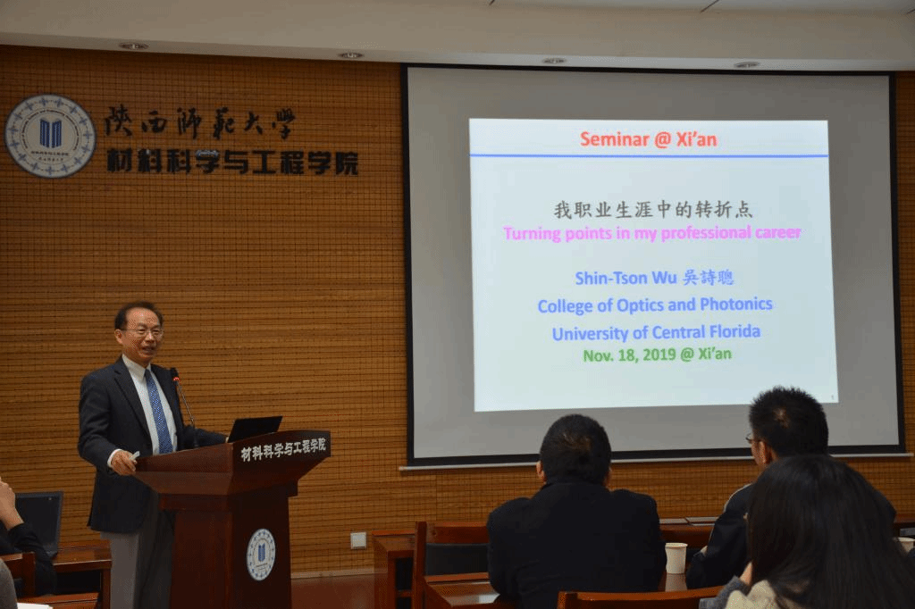 2019年11月18日上午,公司邀请了美国中佛罗里达大学吴诗聪教授在致知楼2307会议室为广大师生作了题为“我职业生涯中的转折点”的学术报告。公司陈新兵教授、安忠维教授、陈沛教授、高斐教授、沈淑坤副教授,西安近代化学研究所和西安彩晶光电科技股份有限公司的研究人员及本校研究生参加了本次报告,本次报告由安忠维教授主持。