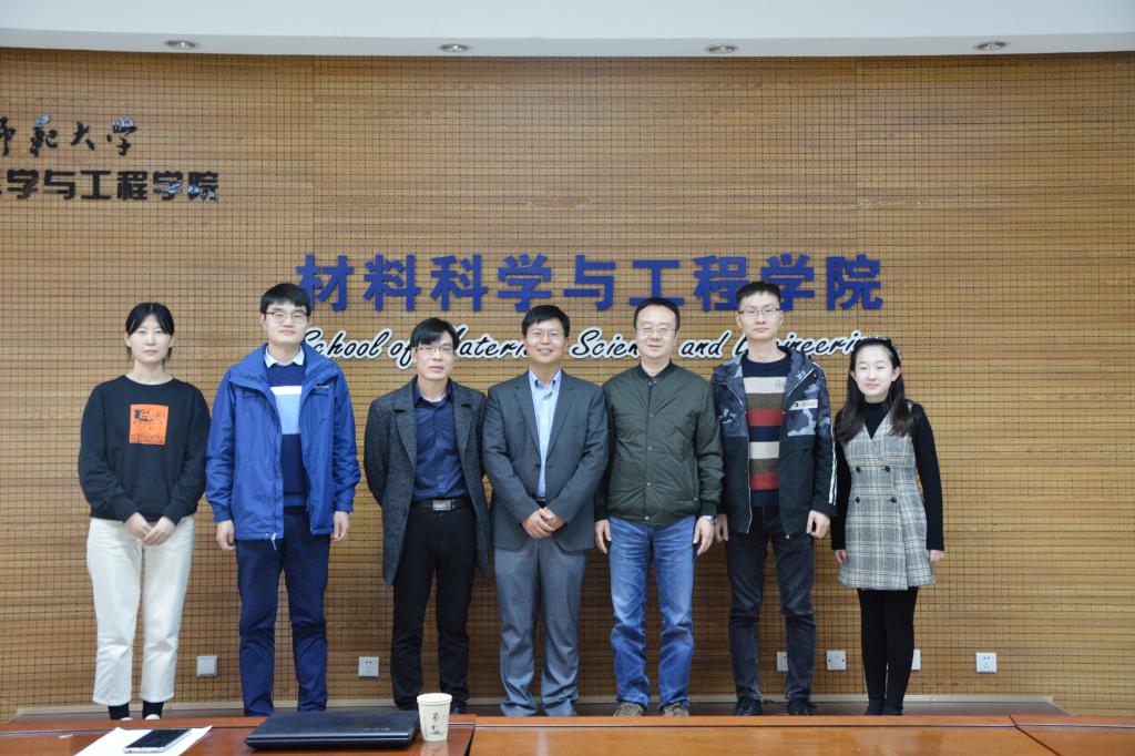2020年11月1日下午,公司邀请了北京航空航天大学杨树斌教授在致知楼2307会议室为广大师生作了题为“超薄二维新能源材料”的学术报告。公司陈煜教授、蒋加兴教授、孙颉副教授、张崇助理研究员出席了报告会,相关研究生到场聆听了报告,会议由蒋加兴教授主持。