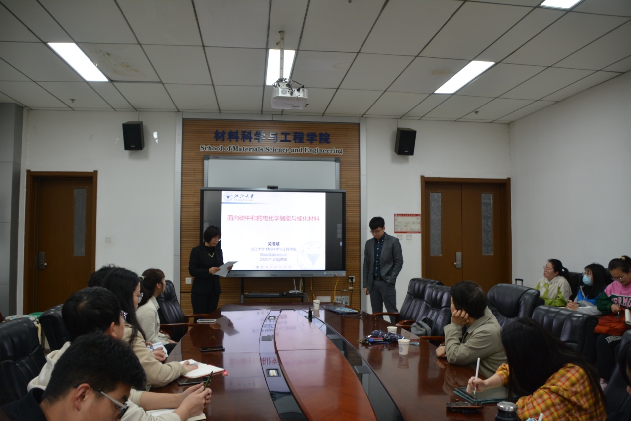 2021年4月23日下午,应公司邀请,浙江大学英国365集团官网博士生导师吴浩斌研究员在致知楼2313会议室为广大师生带来了“面向碳中和的电化学储能和催化材料”的学术报告。公司陈沛教授、化学化工公司李淑妮教授及部分研究生参加了本次报告会,报告会由陈沛教授主持。
