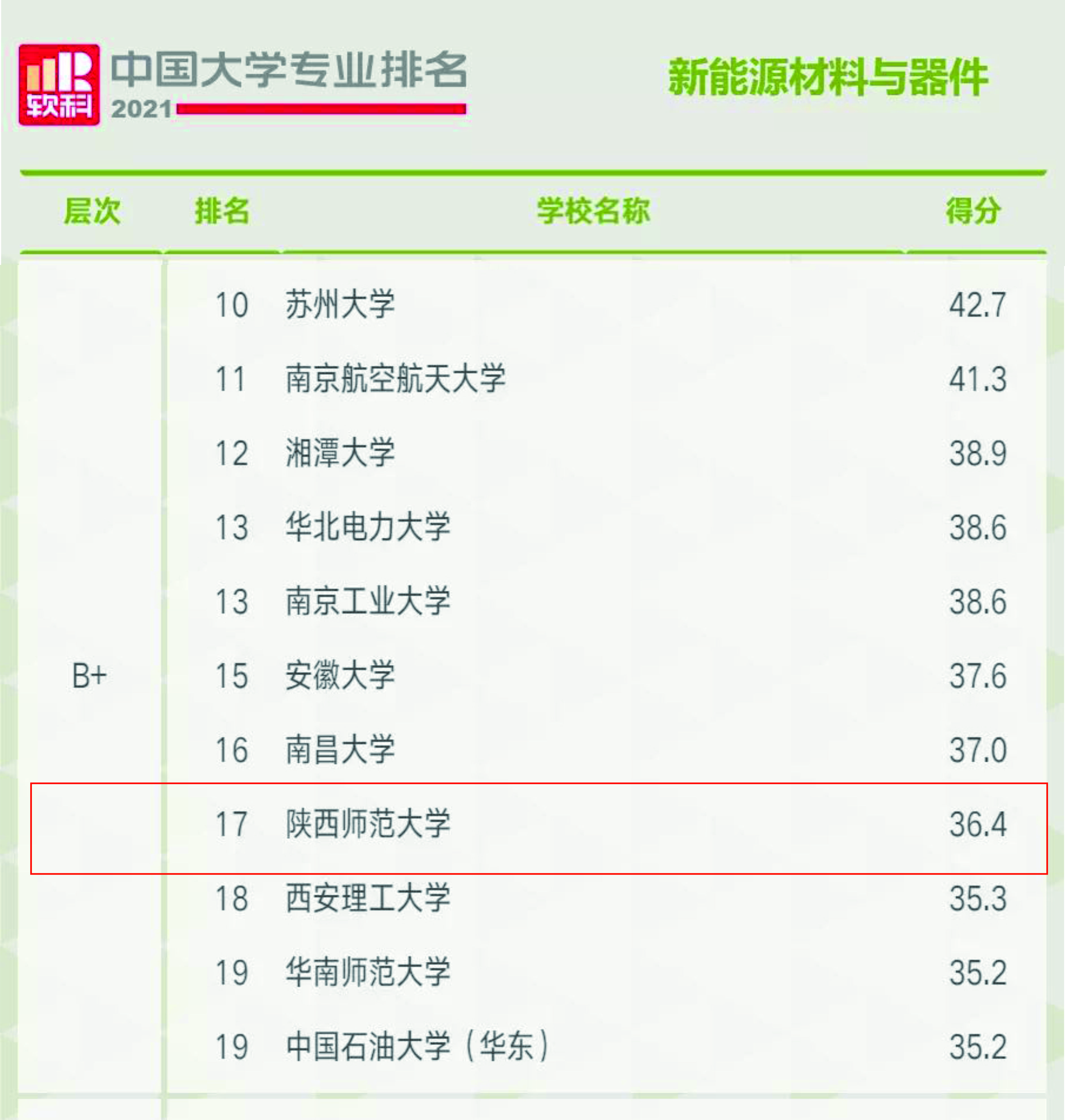2021年6月22日,高等教育评价专业机构软科正式发布2021“软科中国大学专业排名”。其中,公司材料化学与新能源材料与器件本科专业均评级为B+。