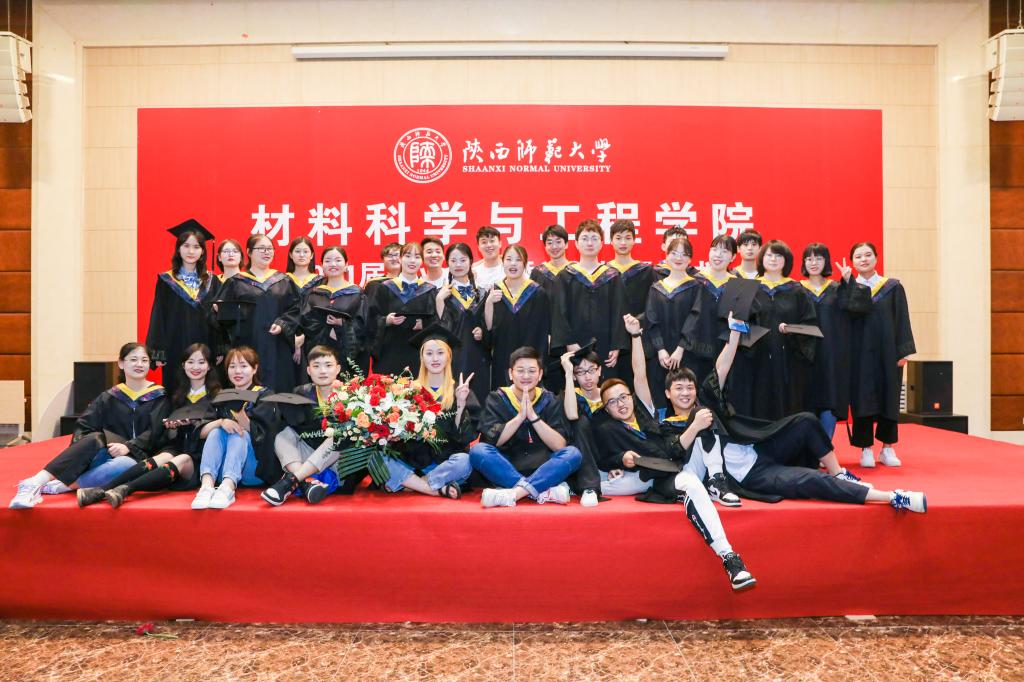 第二个环节是学位授予仪式。在校歌环绕的会场,进行了庄严又隆重的学位授予仪式,材料学分会主席陈新兵教授、分会委员刘生忠教授、分会委员刘宗怀教授为每一位毕业生颁授学位并合影留念。