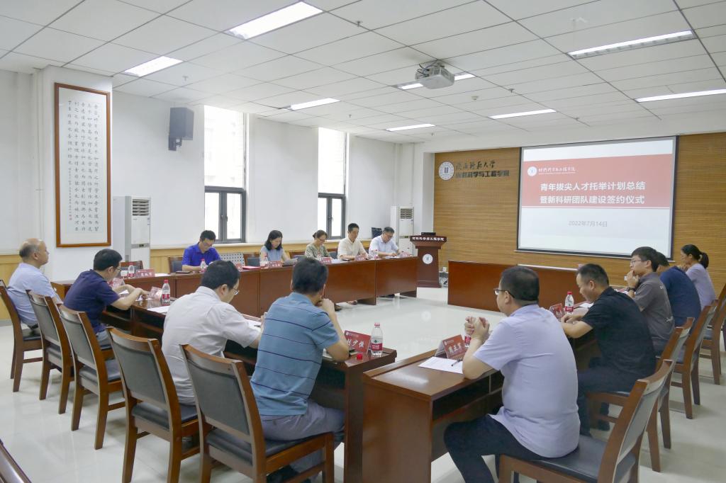 7月14日,英国365集团官网青年拔尖人才托举计划总结会暨创新科研团队建设签约仪式在致知楼2307会议室举行。公司党委常委、副董事长杨祖培、人才工作处处长姚若侠、团队建设与发展规划处(“双一流”建设办公室)副处长(副主任) 李化成、公司领导班子和教师代表出席了签约仪式,会议由公司党委书记郑鹏主持。