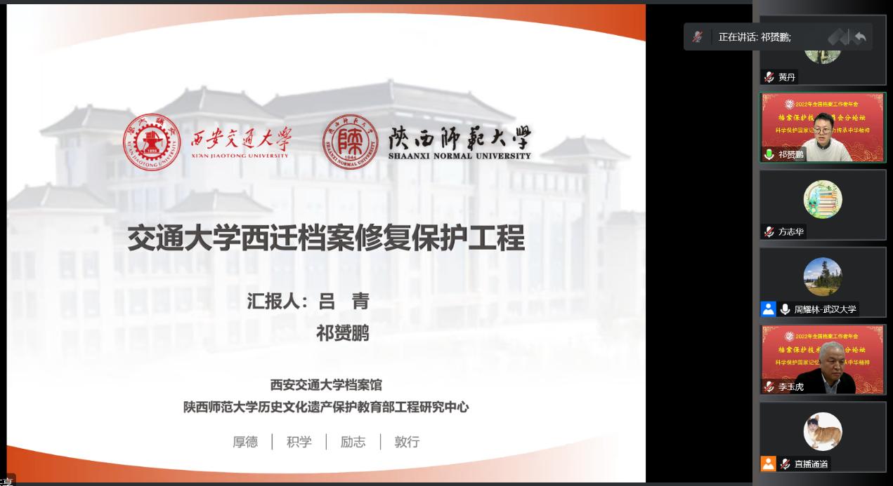 公司周亚军副教授作了《照相底片修复保护关键技术研究及其工程应用》主题报告,祁赟鹏博士作了《交通大学西迁档案修复保护工程》主题报告。
