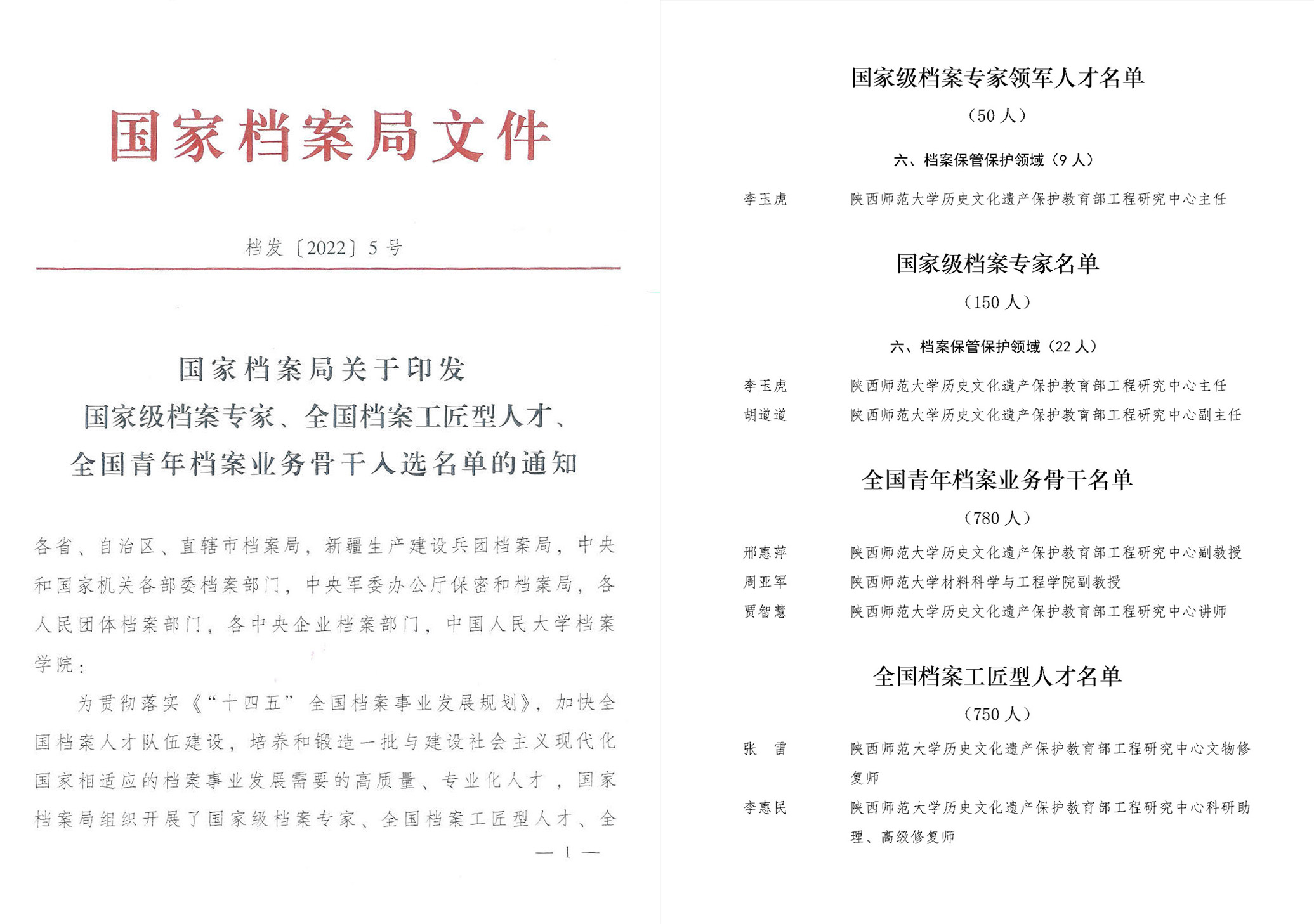 近日,国家档案局公布“三支人才队伍”人选名单,公司共有7人成功入选。其中,李玉虎教授入选国家级档案专家领军人才,胡道道教授入选国家级档案专家,邢惠萍副教授、周亚军副教授、贾智慧助理研究员入选全国青年档案业务骨干,张雷、李惠民入选全国档案工匠型人才。