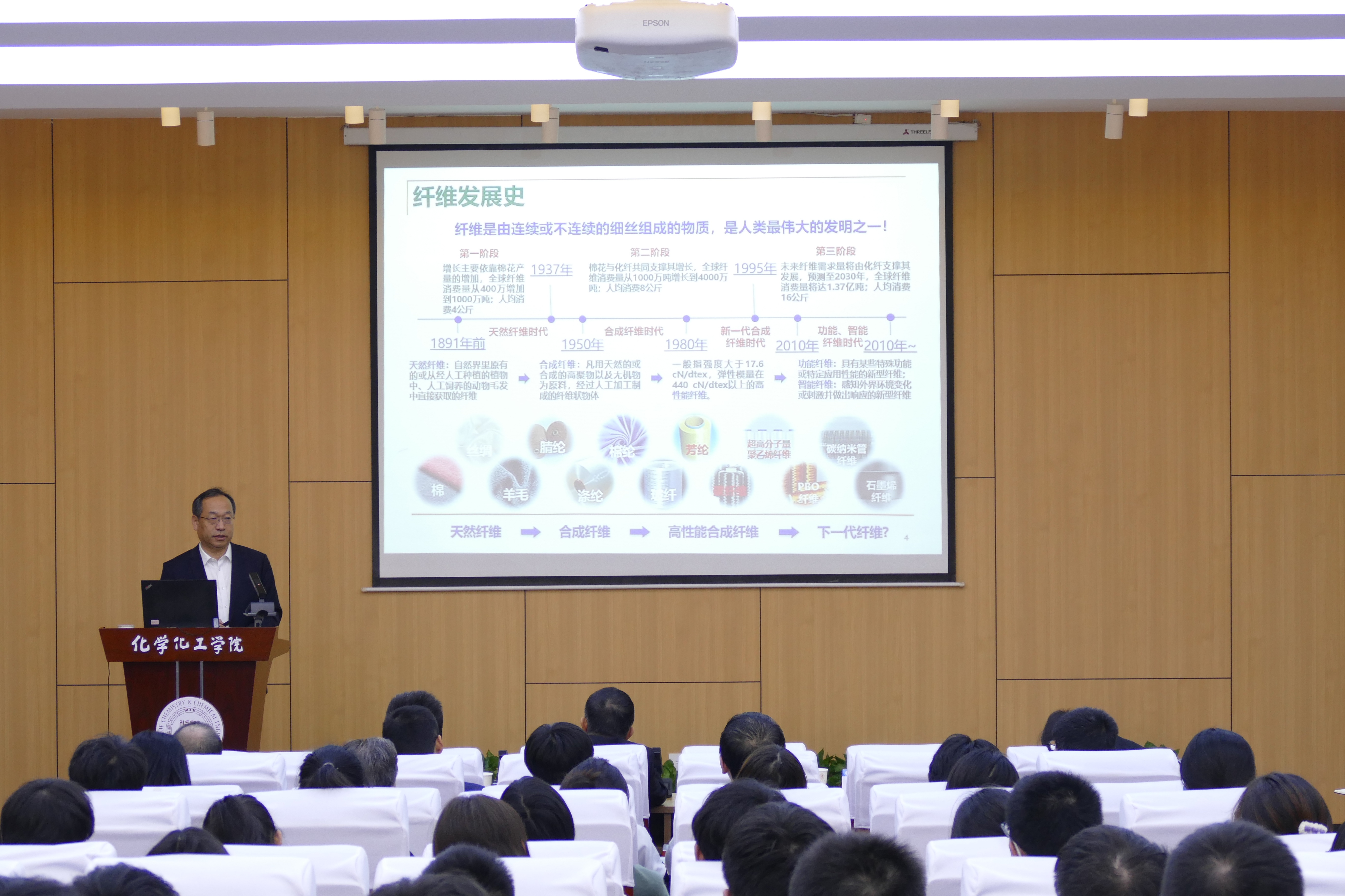 报告会上,张锦院士从纤维领域的宏观背景出发,介绍了制备烯碳纤维的原材料获取、烯碳纤维优异的力学性能的研究,实现结构功能一体化的进展和烯碳纤维的批量制备与应用探索,立足当下对烯碳纤维的发展进行总结与展望。发展轻质高性能纤维材料是材料领域的研究方向,具有sp2杂化的烯碳材料(主要包括碳纳米管和石墨烯)具有低密度、高力学性能、优异导电和导热性能等优点,是打造下一代轻质高强、高韧、功能与智能纤维的理想基元材料。在探讨“如何实现烯碳材料优异性能向复合体系的高效传递”的问题时,张锦院士强调,在复合纤维研发中要增其长、补其短、赋其新,学会“卤水点豆腐”,要立足于解决应用场景中的科学问题,充分利用纤维的独特性,解决产业化应用中的技术难点。