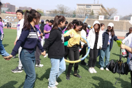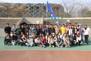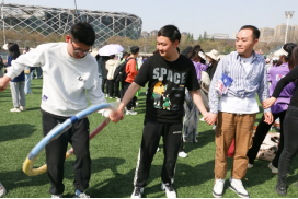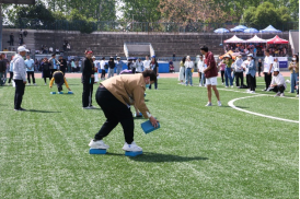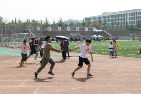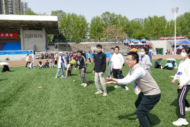 在导学项目中,闫俊青、杨奔老师和同学们通力合作,顺利完成了两人背夹球,多人沙包大战等,在共同挥洒汗水的过程中,进一步增进了师生情谊。