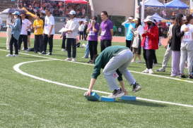 在趣味项目的比赛现场,无论是“一分钟仰卧起坐”“一分钟跳绳”“企鹅漫步”等个人项目,还是“一圈到底”“七人八足”“摸石过河”团体项目,运动员们都积极配合、全力以赴,尽情享受运动的快乐!
