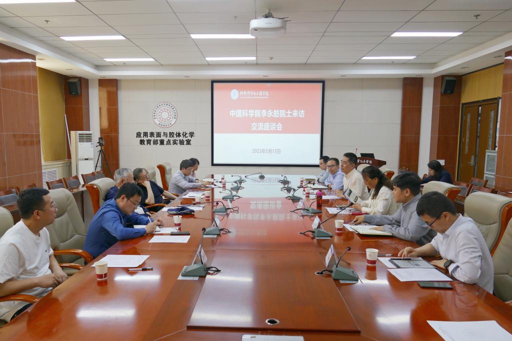 曾京辉对公司学科发展、团队队伍、研究现状等方面做了介绍,并对公司科研团队、托举计划等措施重点进行了汇报。张卫兵介绍了公司人才队伍建设情况及相关政策,希望能与李院士持续开展良好的交流与联动,以协助青年教师快速成长,推荐优秀人才加盟公司。李永舫院士在发言时肯定了公司在建设初期选择的发展方向,对公司在学科评估、人才引进、队伍建设等方面提出了意见建议。公司创新团队负责人与会发言并与李院士进行了深入交流。