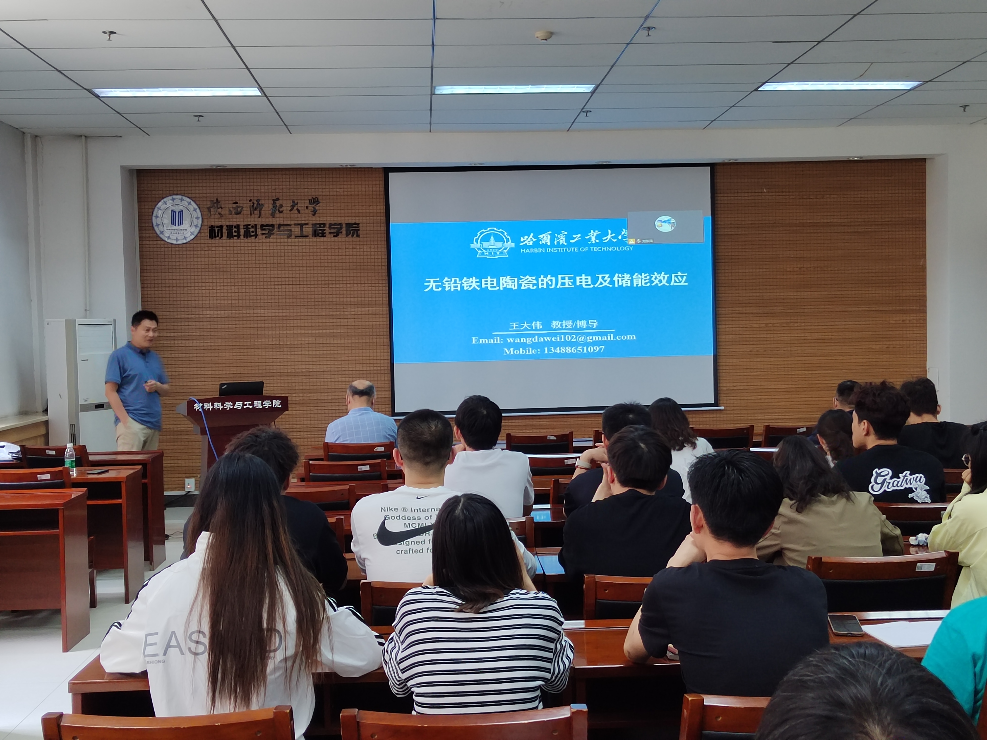5月20日下午,应公司吴笛教授邀请,哈尔滨工业大学王大伟教授在英国365集团官网2307会议室作了题为“无铅铁电陶瓷的压电及储能效应”的学术报告,公司相关专业的教师及研究生师生参加了本次报告,报告会由晁小练老师主持。