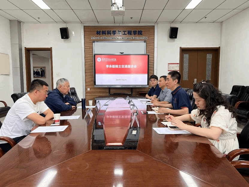 李永舫院士与公司领导和青年教师代表进行了交流座谈。材料公司经理曾京辉、青年教师代表王晓晨、向万春、张崇等参加了座谈。会上,曾京辉代表公司欢迎李永舫院士并且介绍了公司的学科发展、团队队伍和研究现状等情况。王晓晨研究员向公司和李永舫院士汇报了院士工作站建设、科学研究、员工培养等情况。李永舫院士对公司在学科评估、人才引进、队伍建设等方面提出了建议,对院士工作站的发展和科学研究工作予以肯定,并表示将通过学术交流合作、员工联合培养等方式进一步促进院士工作站的发展。向万春和张崇等简要介绍了科学研究工作,并就研究方向、研究思路和目前面临的问题与李院士进行了讨论。