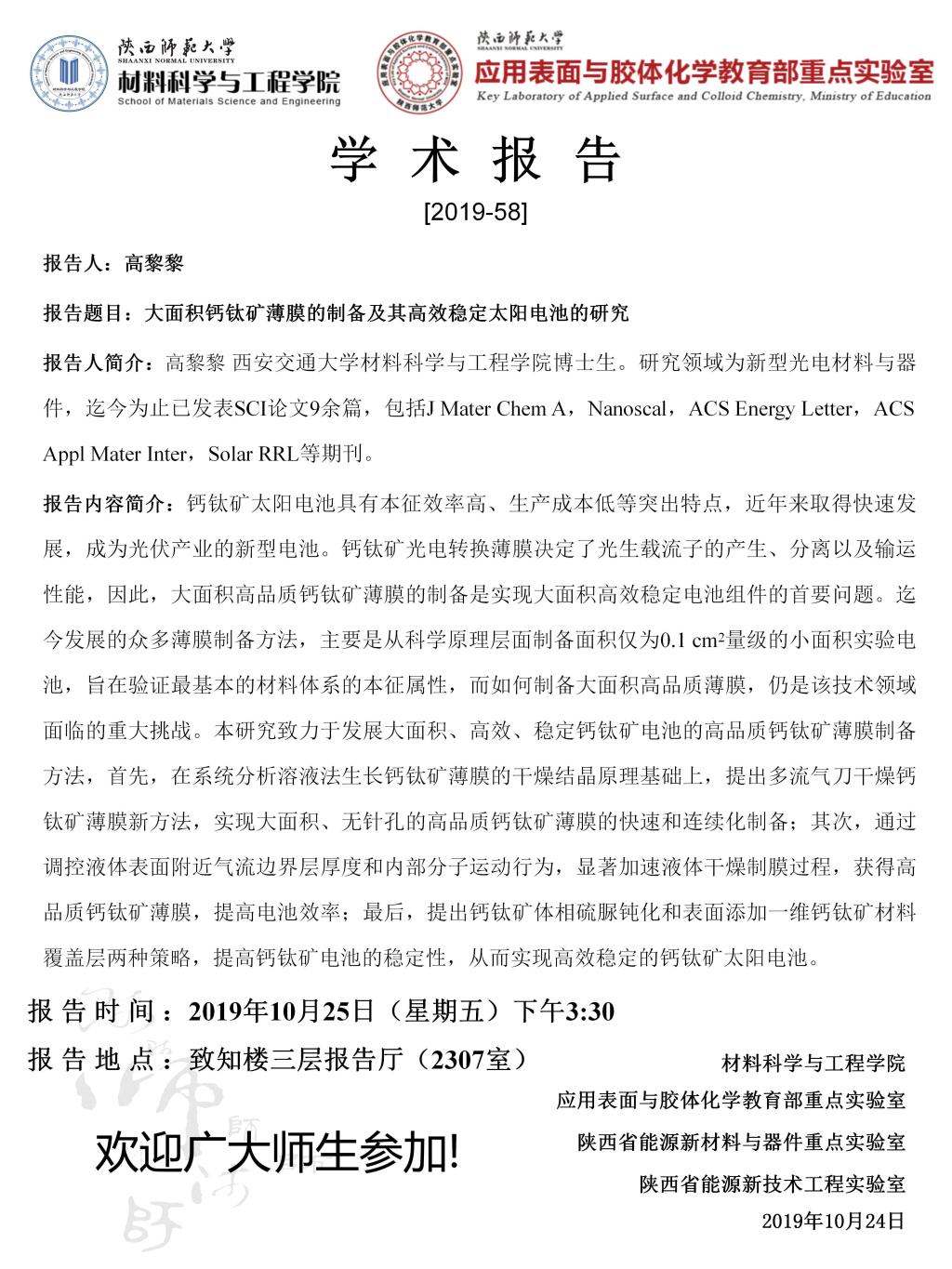 【学术报告】10月25日学术报告预告(二)